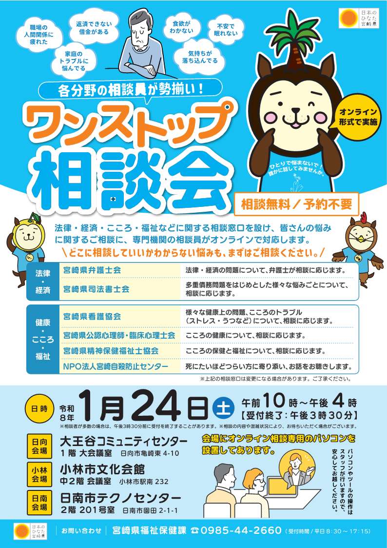 「ワンストップ相談会」を開催します!<1/24(土)・日南/小林/日向で開催>